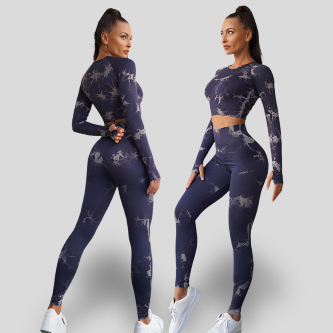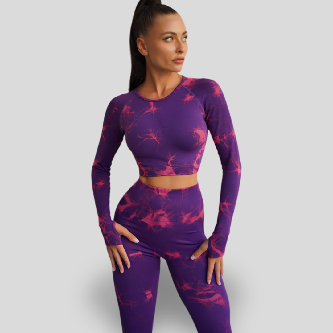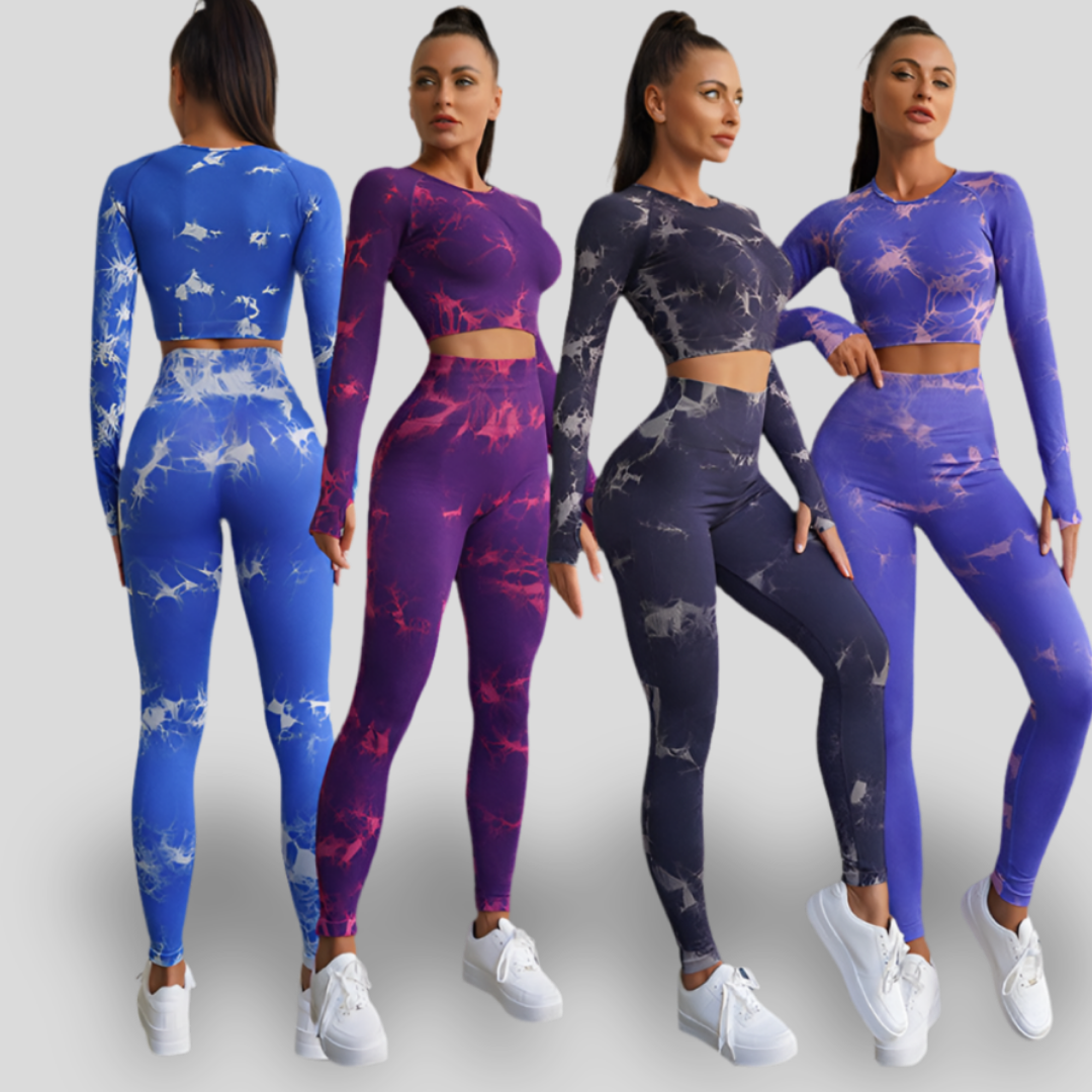 Taglie di Completo yoga a vita alta e manica lunga - Cloud