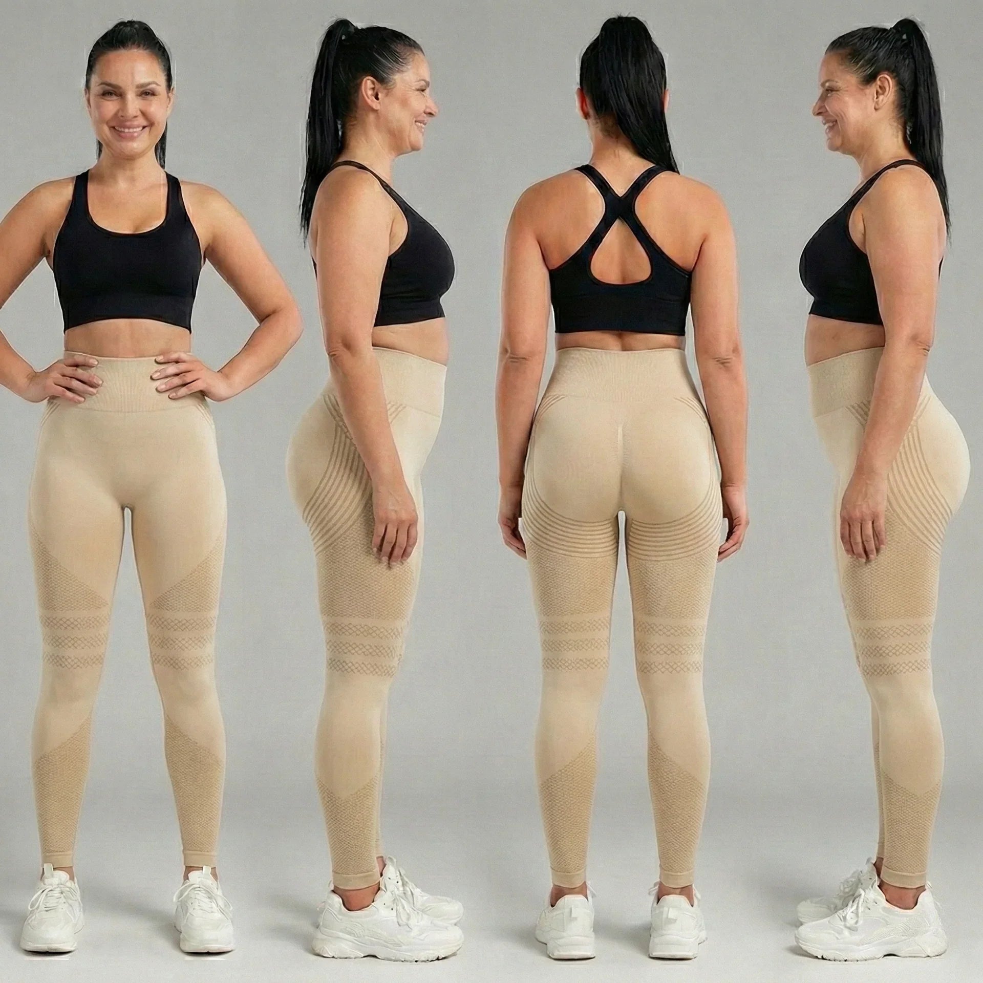 Grâce à leur conception gainante, les leggings offrent un effet tonifiant immédiat: taille affinée, fessier galbé et jambes mieux définies, tout en restant confortables à porter au quotidien.